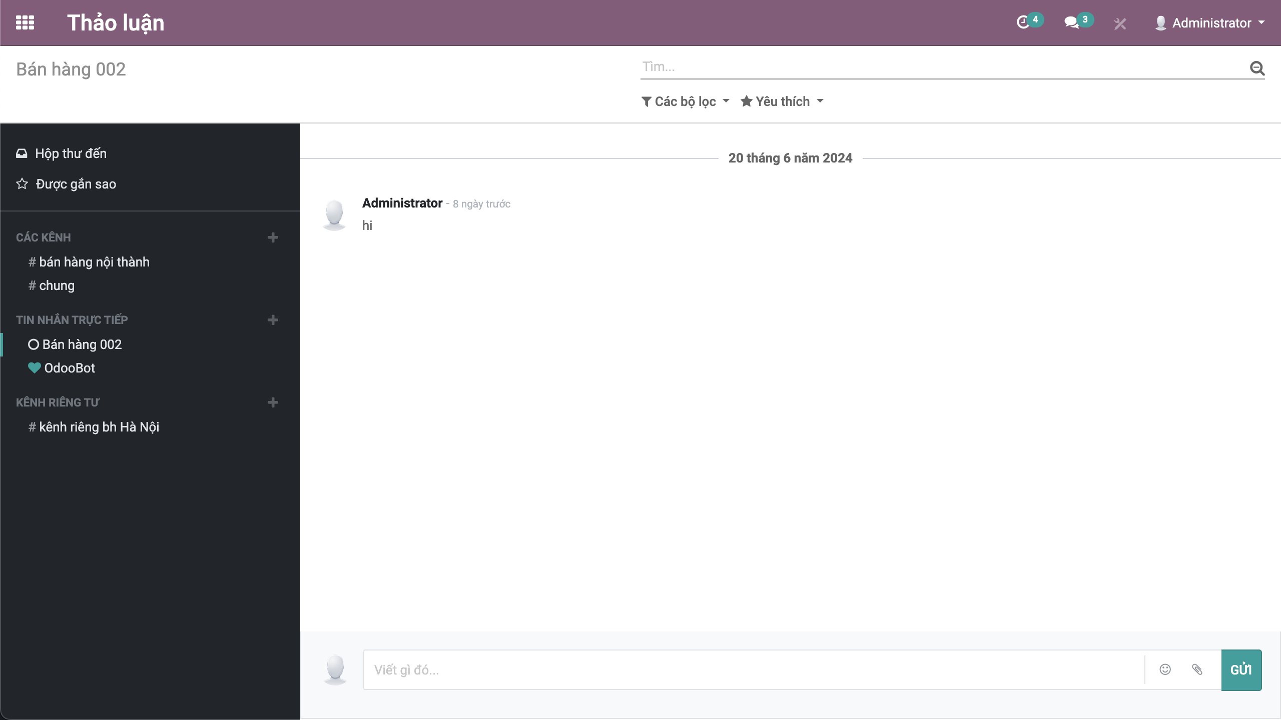 Bước 3: Nhập nội dung tin nhắn cần trao đổi và bấm nút GỬI để gửi tin nhắn trao đổi của mình vào kênh.