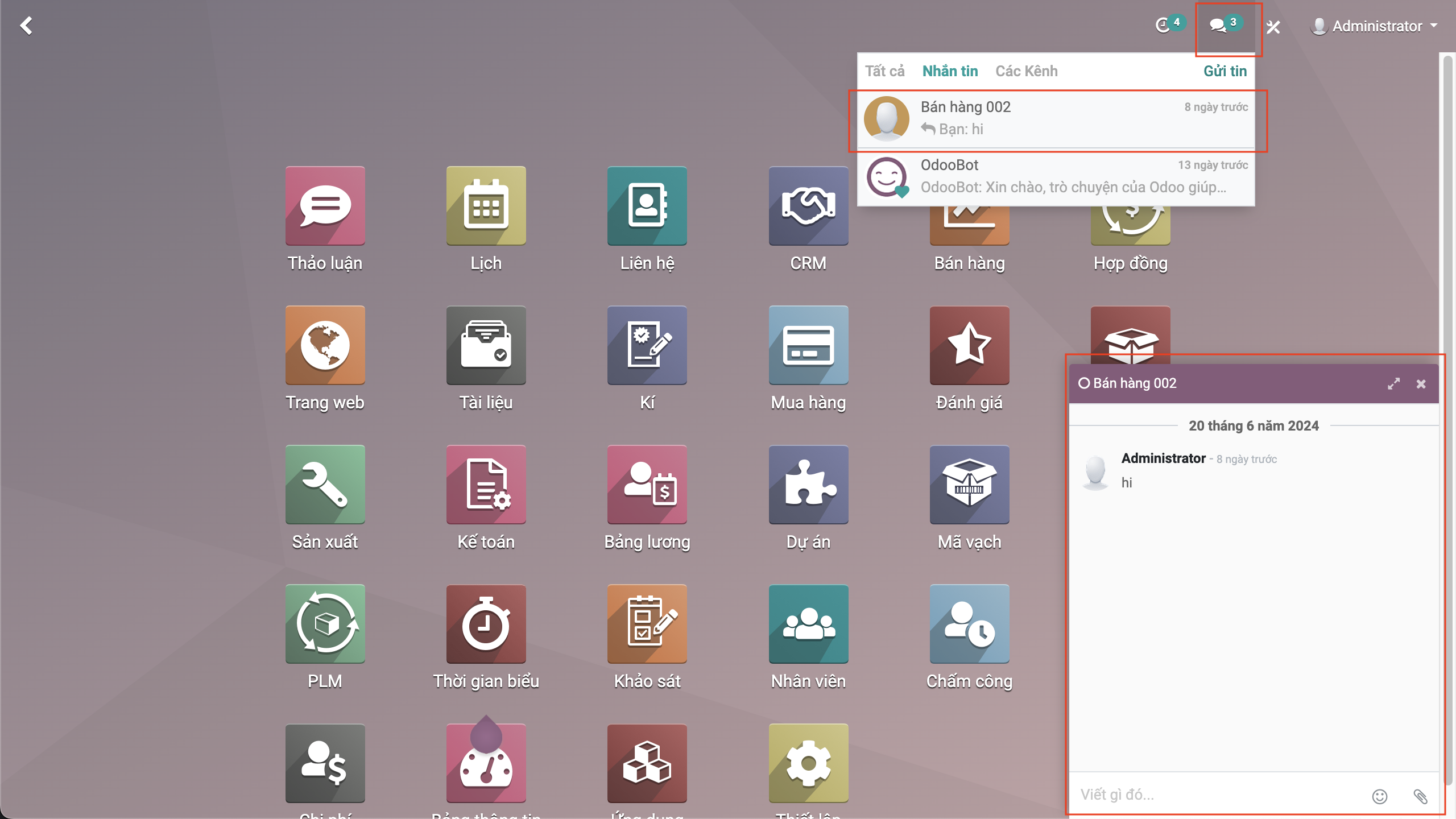 Khi bấm vào một tin nhắn, hộp trò chuyện được mở ra ở góc phải phía dưới màn hình, người dùng có thể trao đổi và gửi tin nhắn luôn từ hộp trò chuyện này.
