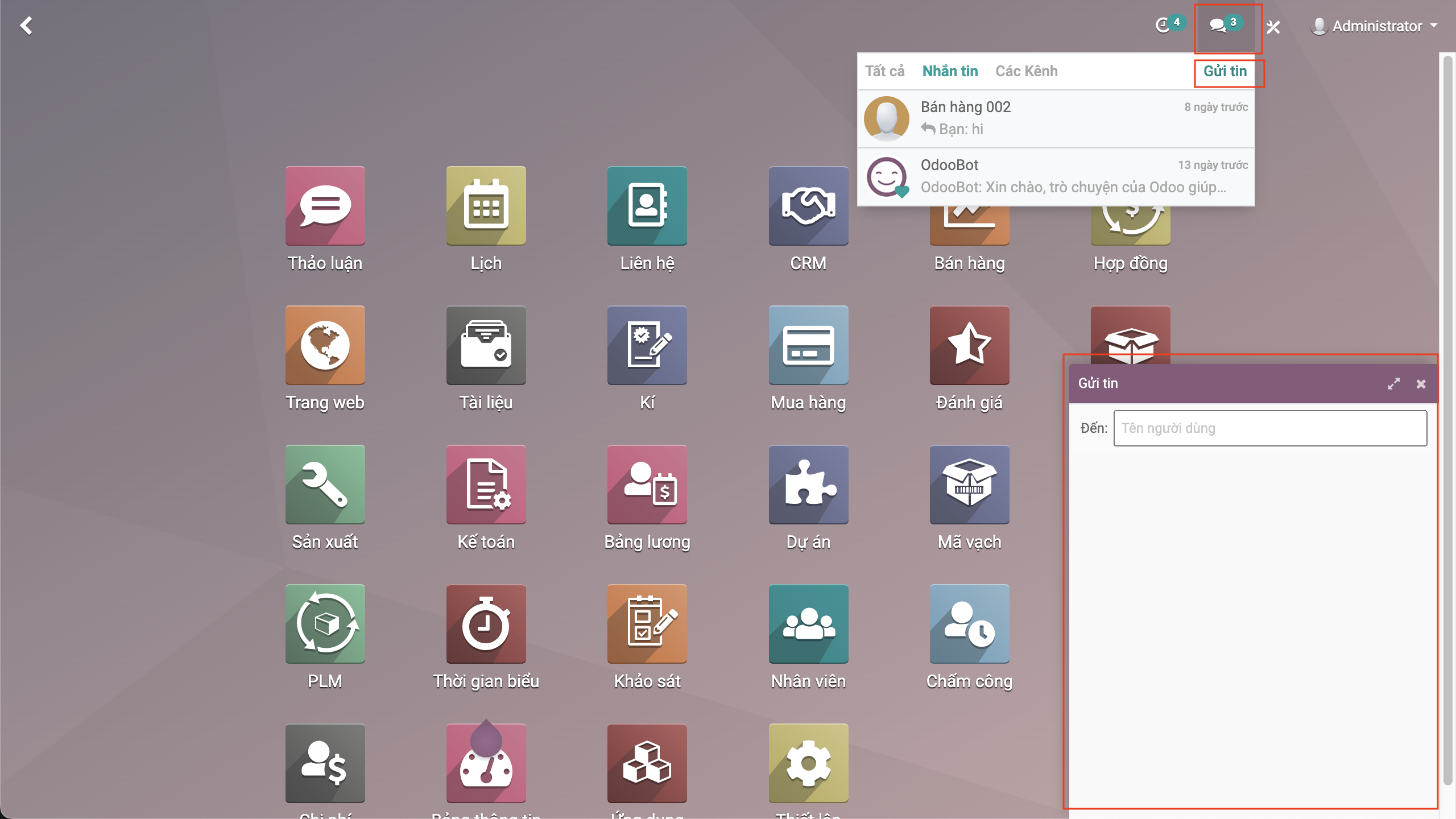 Ngoài cách truy cập trực tiếp vào phân hệ Thảo luận để xem, gửi, quản lý tin nhắn của mình, hệ thống cung cấp cho người dùng thêm một lối tắt, giúp người dùng truy cập nhanh hơn vào hộp tin. Để sử dụng lối tắt này, người dùng bấm vào biểu tượng