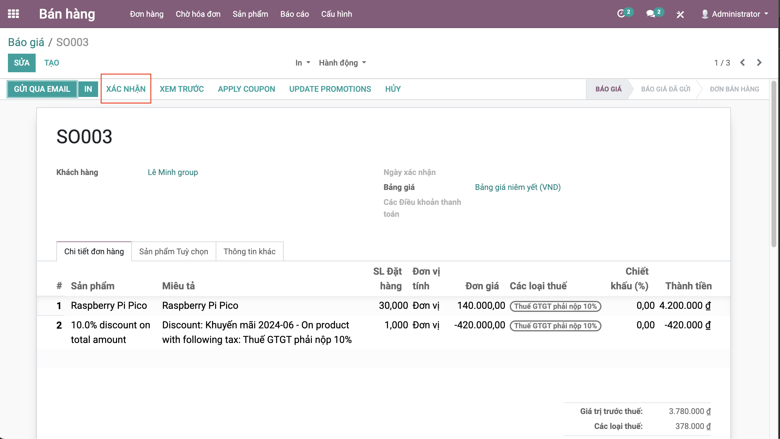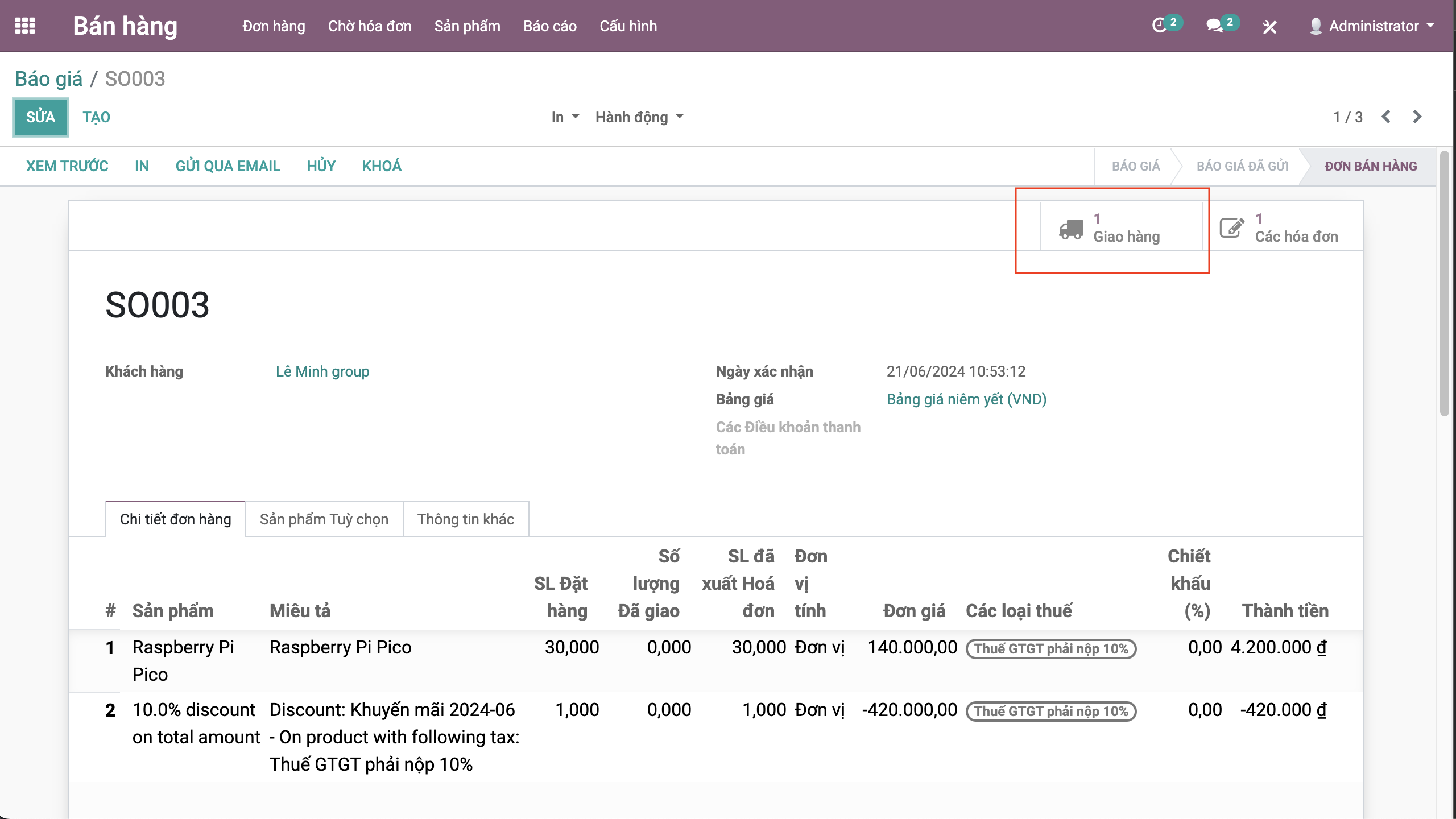 Bước 5: Xác nhận đơn hàng, bấm Xác nhận >> Đơn chuyển sang trạng thái Đơn bán hàng.