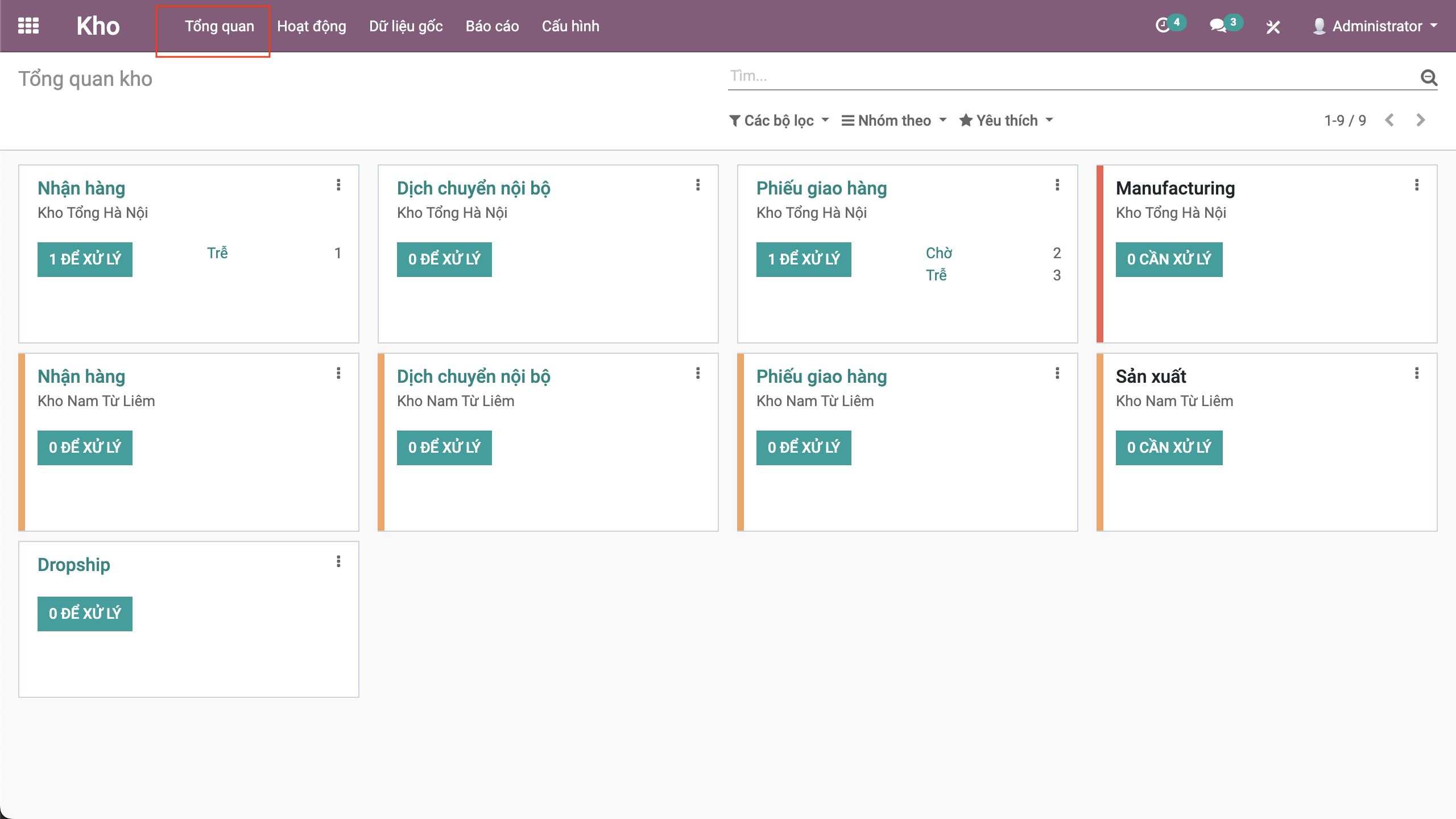 Điều chuyển nội bộ : Cho phép dịch chuyển từ kho hàng này qua kho hàng khác